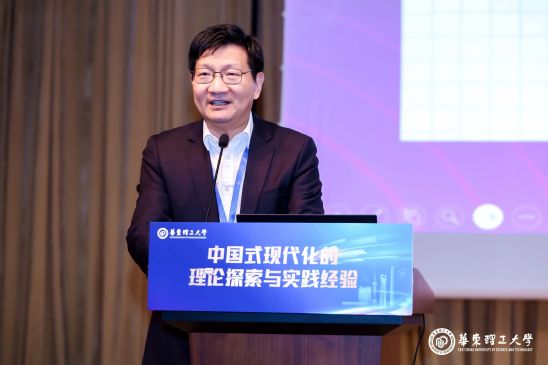 华东理工大学中国式现代化研究院院长吴柏钧教授作研究院工作汇报,系统介绍了中国式现代化研究院自2023年6月成立以来,围绕经济现代化、社会现代化、科技现代化和法治现代化四个领域,在学术研究、社会服务和成果转化等方面取得的显著进展。他强调,研究院将启动“中国式现代化理论体系”重大专项,致力于建设现代化数据库与案例库,为中国式现代化的理论与实践注入新动能。